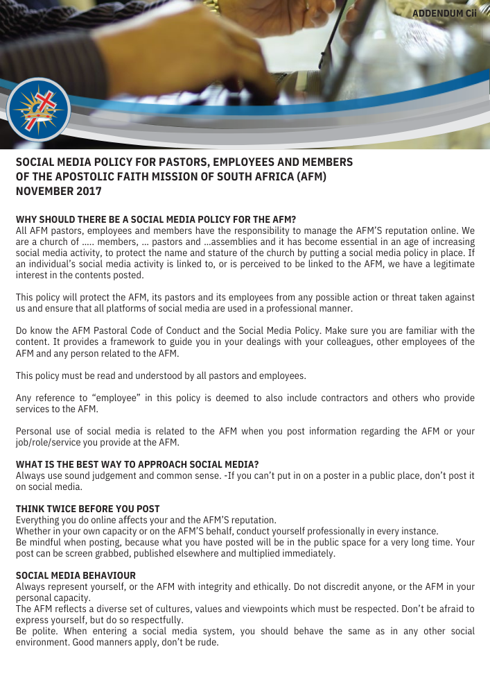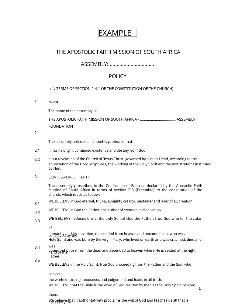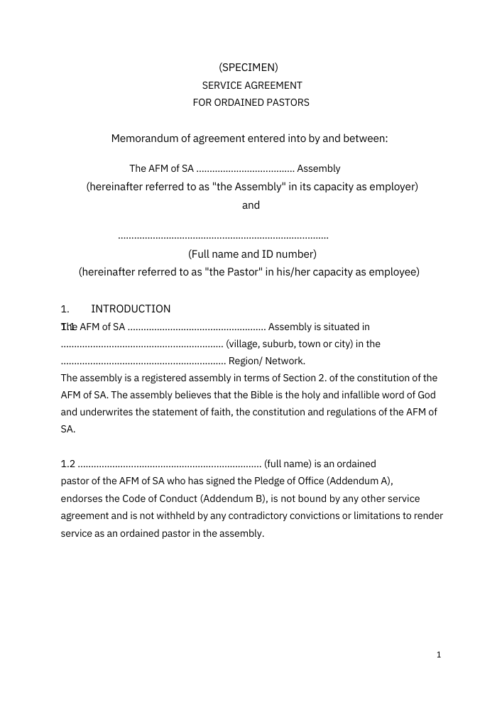 At the National Office we regularly receive enquiries regarding examples for assembly contracts and policies. We trust that the information below will assist our pastors and assemblies with this important task. For further questions or input contact Pastor Selby Khumalo at selby@afm-ags.org.