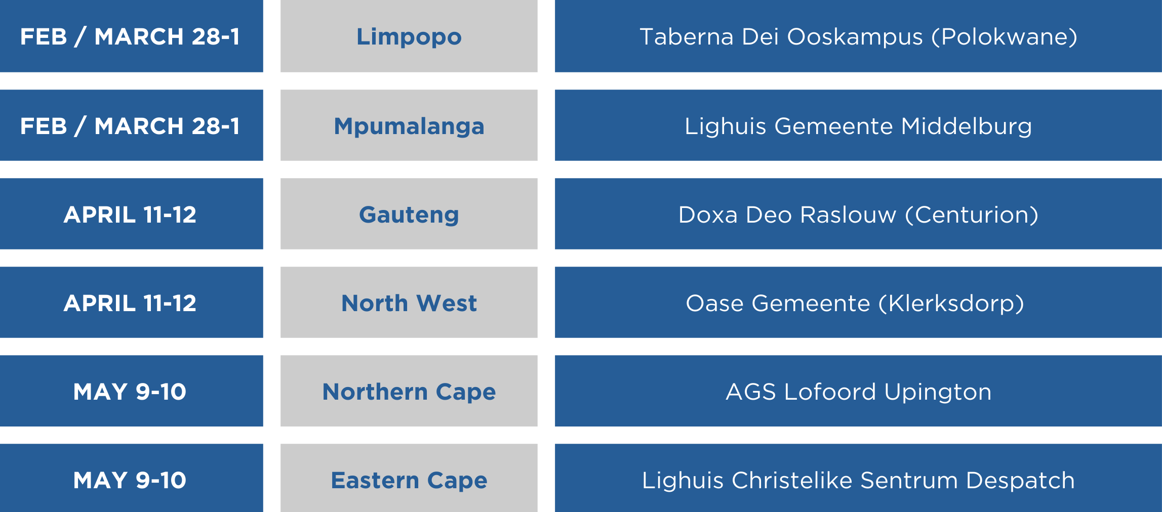 Neem asseblief kennis dat die datums en lokale vir die 2025 NOB Bemagtigingsbesoeke bevestig is: