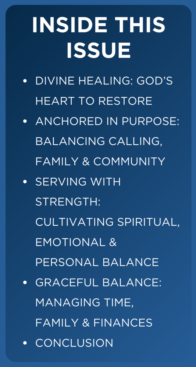 As we continue our faith journey, we are reminded of the importance of both spiritual and practical balance in our lives. In this edition, we reflect on “Divine Healing” as a core truth deeply woven into the DNA of our Church - a testament to God’s power and faithfulness throughout our history. May this article renew your faith in His ability to restore and sustain.