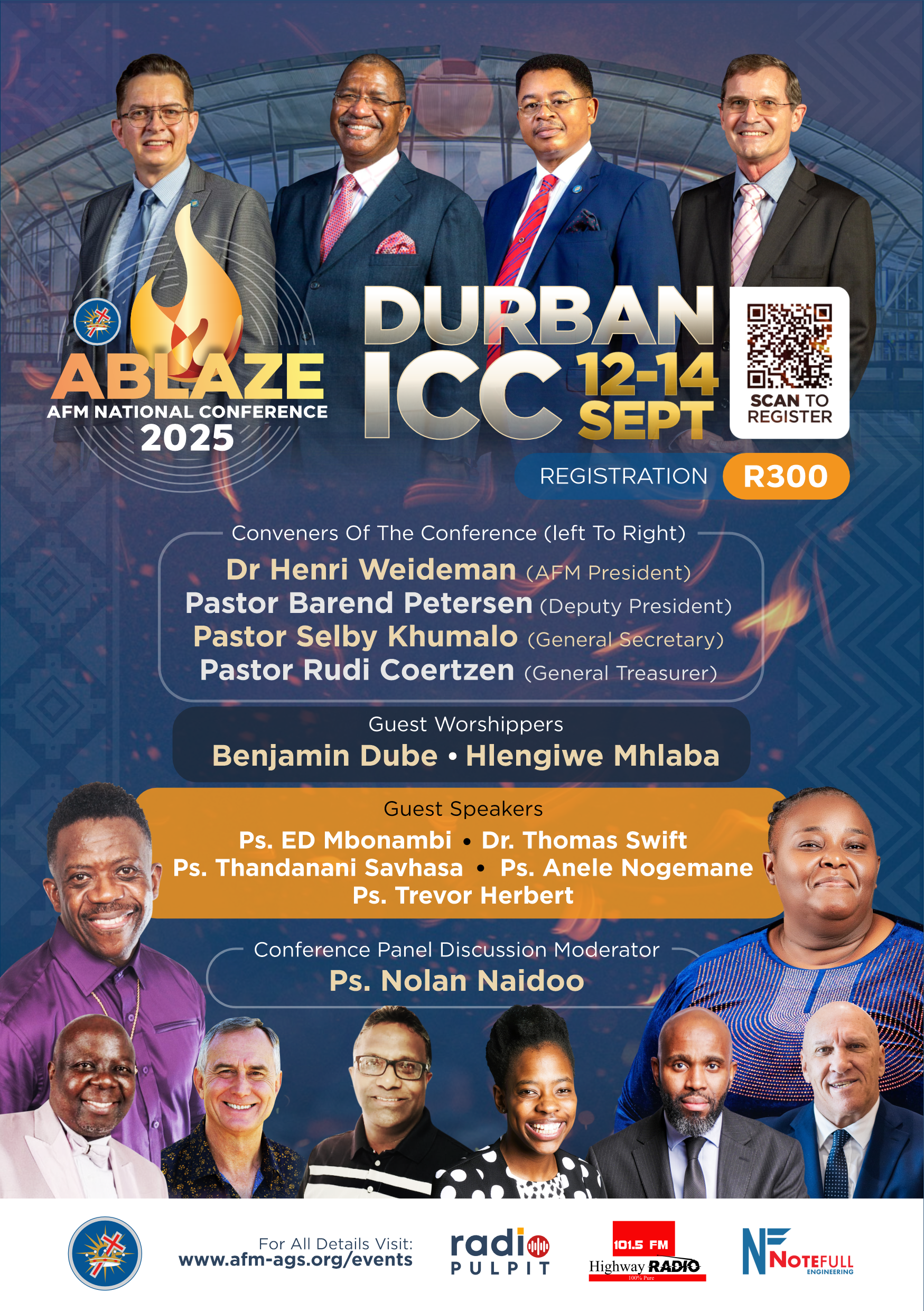 Preach the Gospel, Live the Gospel – Sustain the Fire! Get ready to be ignited, empowered, and commissioned! We are thrilled to invite you to the AFM Ablaze National Conference 2025, a powerful gathering of believers, leaders, and passionate messengers of Christ, united under one divine calling - to Preach the Gospel, Live the Gospel, and Sustain the Fire! This year's theme challenges us to return to the purity of the message, the integrity of the messenger, and the relevance of the method. As Paul charged Timothy, “Preach the Word; be prepared in season and out of season...” (2 Timothy 4:2). We are reminded that the call is urgent, the message is non-negotiable, and the harvest is plentiful. This is more than a conference - it is a divine appointment. Whether you are a preacher, worshipper, or kingdom builder, come ready to be refreshed, realigned, and reignited! Expect spirit-filled worship, life-changing teachings, and unrelenting passion for the Gospel.