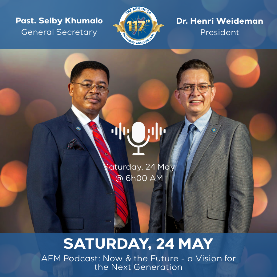 Gedurende Mei-maand het die AGS van Suid-Afrika 117 jaar van Gees-vervulde bediening gevier. Van ’n kragtige pod-uitsending wat oor ons kerk se geboorte en groei gehandel het tot ’n visionêre sessie oor ons toekoms en die rol van die volgende geslag. Beide hierdie vieringe was inspirerend en verenigend. Plaaslike AGS Gemeentes reg oor die land het saamgewerk in die viering van ons “AGS Embleem Dag” en met trots ons embleem as simbool van ons gedeelde identiteit en missie vertoon. Dankie aan elkeen wat daaraan deelgeneem het en wat gehelp het om dit ’n betekenisvolle viering van ons ryk Pinkstererfenis te maak.